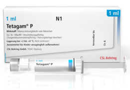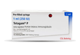 Tetagam PFS is a Human Tetanus Immunoglobulin (HTIG) that provides immediate, passive immunity against tetanus. Unlike the standard vaccine (which takes weeks to work), this “ready-made” antibody injection starts neutralizing the tetanus toxin the moment it enters the bloodstream. It is clinically used for the urgent management of tetanus-prone wounds in individuals who are not fully vaccinated, or as a critical part of the treatment for an active tetanus infection.